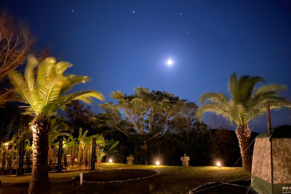 お酒を嗜み、月や星空を眺めながらテントサウナ、ジャグジー、露天風呂で